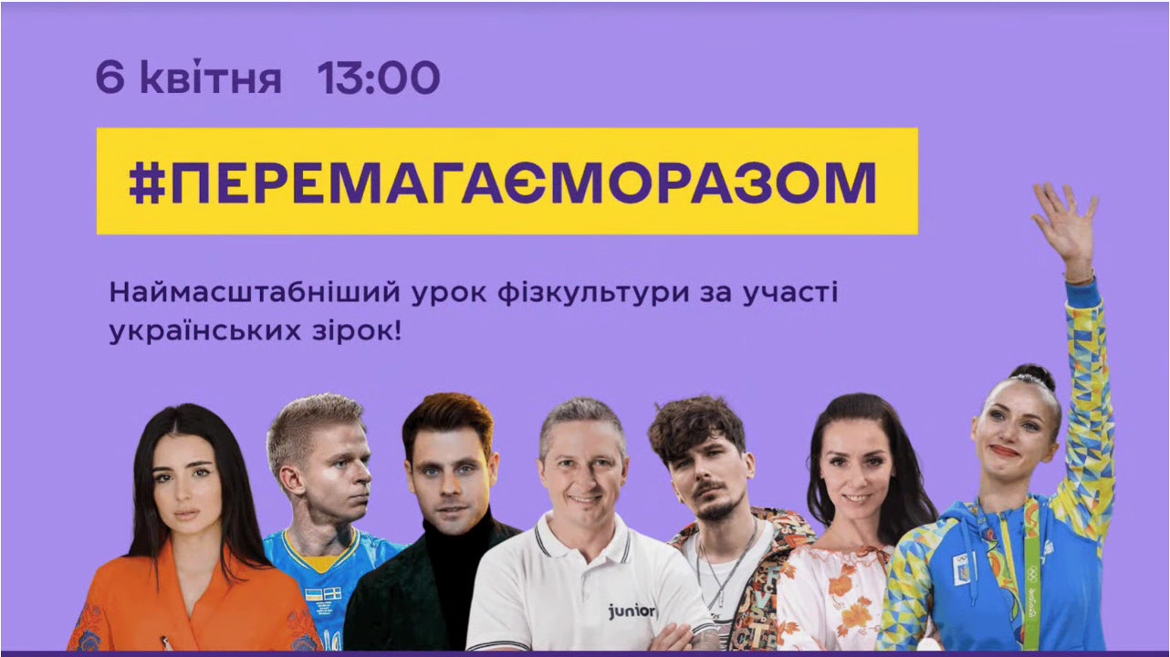 Долучайтеся до уроку 6 квітня 2022 року о 13:00 до прямого ефіру організаторів, підключившись за одним із покликань, і рухайтеся разом з усією країною: