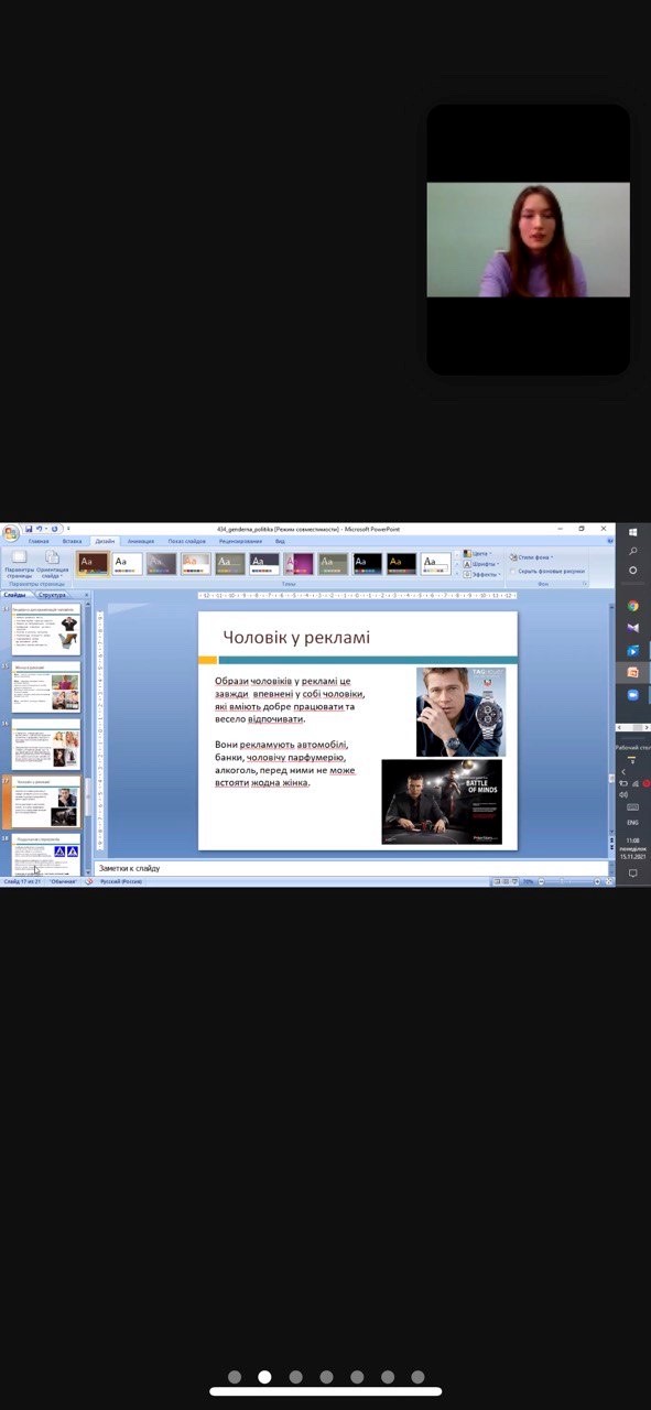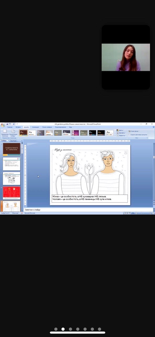 Метою заходу було сформувати розуміння учнями чоловіка і жінки не тільки як біологічних об’єктів, а і як суб’єктів соціальних відносин. Психолог закладу Макарівчук Діана Євгеніївна розповіла, що таке гендер та гендерні ролі, які гендерні стереотипи існують, та як вони впливають на наше суспільство, сім’ю та кар’єру обох статей.