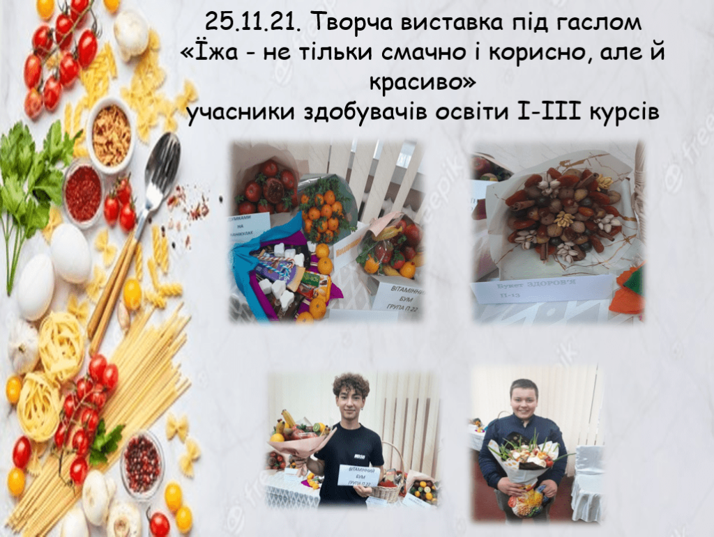 Відповідно до річного плану роботи методичної комісії викладачів та майстрів виробничого навчання професії «Кухар, кухар судновий, офіціант, пекар» з 22.11.21 по 26.11.21 в училищі проводився предметний тиждень професій під гаслом «Моя професія найкраща»
